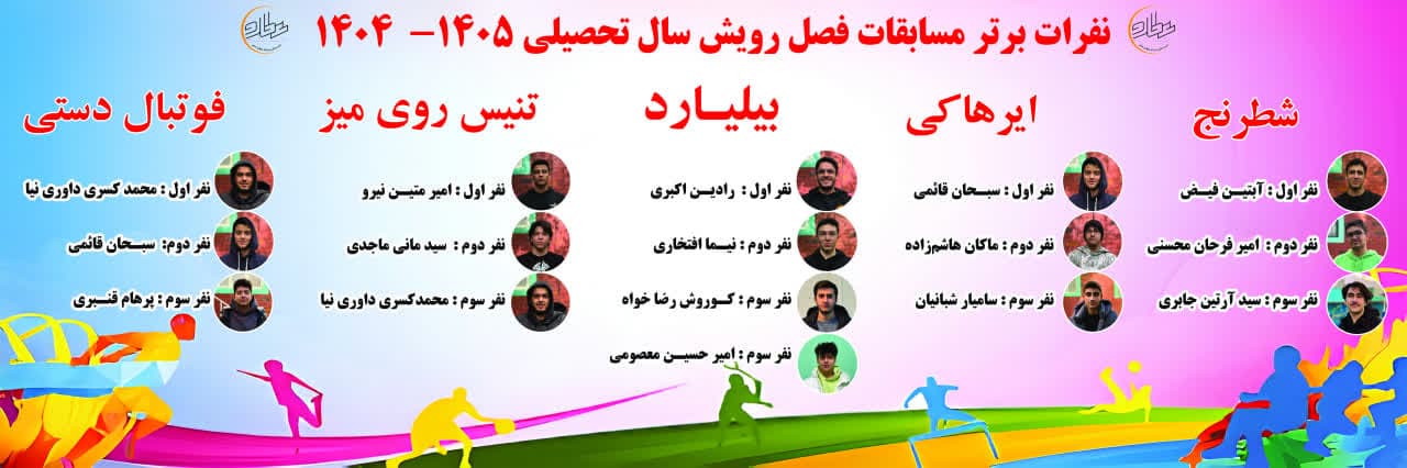 با به پایان رسیدن مسابقات فصل رویش، نفرات برتر در رشته های مختلف مشخص گردید.
